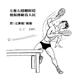 合作默契度越來(lái)越高后,有一次丁聰主動(dòng)給陳四益?zhèn)髁艘粡埳厦娈?huà)著位筆尖朝下的鐘馗,意即現(xiàn)在的鐘馗不捉鬼了。陳四益感到既俏皮又生動(dòng),文思也被挑動(dòng)起來(lái),來(lái)了一回“文配畫(huà)”。“丁先生的畫(huà)確實(shí)有他的風(fēng)格,離得遠(yuǎn)遠(yuǎn)地看也知道是他的作品,他的線條勾勒行云流水、生動(dòng)傳神,直到90歲時(shí)下筆還不抖,了不得的功夫!”