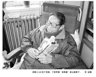 丁聰老人是26日11時(shí)在醫(yī)院飄然遠(yuǎn)行的。丁聰?shù)姆蛉松蚓吭陔娫捴谐领o地證實(shí)了這個(gè)消息:“謝謝你們的關(guān)心,但我們家人尊重丁先生的愿望,不設(shè)靈堂,不舉行一切追悼和紀(jì)念儀式。他只想安安靜靜地離開(kāi)!
