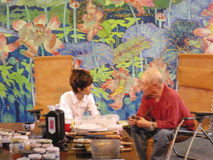 黃永玉在北京的居所——萬荷堂充滿了田園風光和藝術氣氛,成了本次“求學”對話的最佳地點。來到京郊,漸漸行至萬荷堂,原本因胃痛而精神不佳的郭敬明忽然緊張起來,見慣了大場面的他反復表示“很緊張”。沒有上課鈴,《大師課堂》悄然開始,“老師”也走了出來。首次見到黃永玉老先生,郭敬明不停地翻看手中的文稿,為接下來的會面做著準備。不過,我們從他的眼神中,也看出了他內心的期待。