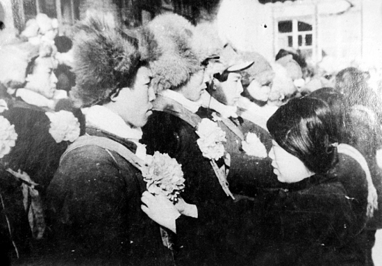 除了參軍作戰(zhàn)外,東北地區(qū)還有60萬民工支前出戰(zhàn)勤!耙擞腥!要錢有錢!要糧有糧!”為了這場戰(zhàn)爭,遼寧省幾乎動(dòng)用了全省的人力物力。17歲至50歲男子們,18 歲至45歲婦女們參加戰(zhàn)勤工作。一切有運(yùn)輸能力的工具,船只、車輛、牲畜等全部用來戰(zhàn)爭運(yùn)輸。工人們組織擔(dān)架隊(duì)。學(xué)校醫(yī)院組織輸血隊(duì)……