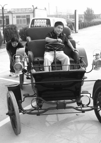 劉先生向記者介紹,這次博覽會(huì)展出的這臺(tái)車是復(fù)制品,真車是國家一級(jí)保護(hù)文物,停在北京頤和園內(nèi)。真車是無價(jià)之寶,而這輛車也是他好不容易得來的,但他拒絕透露此車的來源,也不愿意表露是否愿意出賣。