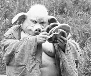 在這組劇照中,有豬八戒咬手指、拿大餅、斜眼看人等,不僅面目可憎,甚至透著一股兇氣。由于豬臉布滿皺紋,頭發(fā)和眉毛皆白,老態(tài)龍鐘,滿臉滄桑。為突出豬八戒的肥壯,演員臧金生還裝了個(gè)假肚,肚上堆滿了贅肉,連后腦勺和后頸部都布滿贅肉。不少網(wǎng)友表示,這個(gè)造型“太像一頭真豬”,沒(méi)有半點(diǎn)藝術(shù)美感,不如老版憨態(tài)可掬的豬八戒那么可愛(ài)。