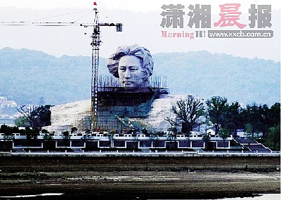 “哎,你們看,多英俊呀,多帥氣呀,青年時(shí)代的毛主席!”家住湖南第一師范附近的黃巖明先生,昨日打開窗戶便看見矗立在橘子洲頭的青年毛澤東藝術(shù)雕塑,他趕忙攜左鄰右舍到湘江風(fēng)光帶來個(gè)先睹為快。而令他意想不到的是,盡管高高的塔吊還陪伴著藝術(shù)雕塑一動(dòng)也不動(dòng),盡管藝術(shù)雕塑面部以下的腳手架還沒全部拆除,但橘子洲頭和湘江兩岸已經(jīng)聚集著上萬名長沙市民駐足觀看了。