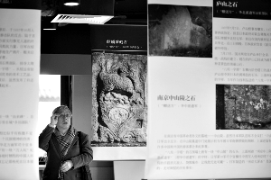 在展出的這些被掠奪走的石頭圖片中,有明代宮廷雕刻麒麟石、“上海市政府辦公廳”唐草紋樣拱門石、長城石磚、綏遠(yuǎn)清代高官墓石、南京中山陵的石頭、泰山頂上的石頭、南京紫金山上的石頭、蘇州城的太鼓石、旅順港的封鎖舟之石等。(記者王薈)