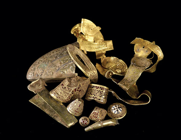 今年7月,考古人員特里·赫伯特在英國中部的一個農(nóng)場中發(fā)現(xiàn)了迄今最大的、盎格魯撒克遜時期的寶藏,包含1500余件金、銀制品,其歷史可追溯至17世紀。