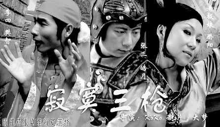 近日,文殊坊一牌坊內(nèi),一群身著奇特服裝的年輕人引來不少游人注目。女子身著紗裙,高挽的發(fā)髻上別著一個(gè)橘紅色的咖啡勺;一男子頭上纏著粉色紗巾,一身粉色長袍內(nèi)配一件繡著牡丹的肚兜,腰間系著一條金黃色的抹布;另一男子頭戴鋼盔,身著盔甲,手持長劍,外表冷峻。不少路人議論紛紛,稱這些造型好眼熟。原來,這是成都草根劇組正在拍攝《寂寞三槍》,而這實(shí)際上也是今年《寂寞春晚》中的一個(gè)節(jié)目———《蝸居時(shí)代的愛情故事》,在視頻的結(jié)尾,“李四”模仿小沈陽的口氣邀請(qǐng)大家:親愛的賈君鵬們,你們準(zhǔn)備好了嗎?歡迎到“寂寞春晚”吃年夜飯。目前,拍客已經(jīng)把這段《寂寞三槍》的拍攝視頻發(fā)到了網(wǎng)上,引起了網(wǎng)友們的極大興趣,點(diǎn)擊率很高。對(duì)這個(gè)節(jié)目,KoKo只神秘地透露了一句話:3個(gè)人窩到一起居住,又是三角戀,結(jié)果可想而知了!顿Z君鵬的團(tuán)圓飯》是一個(gè)互動(dòng)參與的節(jié)目,劇組會(huì)事先把菜單設(shè)計(jì)好,參與的人分成小組搶菜單,看誰拼出的團(tuán)圓飯菜單最好。當(dāng)然,搶菜單并不是一件簡單的事,如果搶到的全都是湯,那么今年就“泡湯”,如果搶到的全都是菜,那么今年就“歇菜”!夺烎~之法》也是一個(gè)互動(dòng)小游戲,用魚鉤去釣酒瓶里邊的小字條,字條上有一個(gè)手機(jī)號(hào)碼,釣到就可以打,電話號(hào)碼是觀眾進(jìn)場時(shí)就留下的,到時(shí)候會(huì)打通誰的電話就看緣分了。魔術(shù)《不差錢》會(huì)有一個(gè)魔術(shù)師不停變“錢”出來,游戲《甲骨文》將邀請(qǐng)觀眾用甲骨文碎片拼出一句和愛情有關(guān)的話,就像《風(fēng)聲》里面破譯摩斯密碼一樣,會(huì)非常有趣。