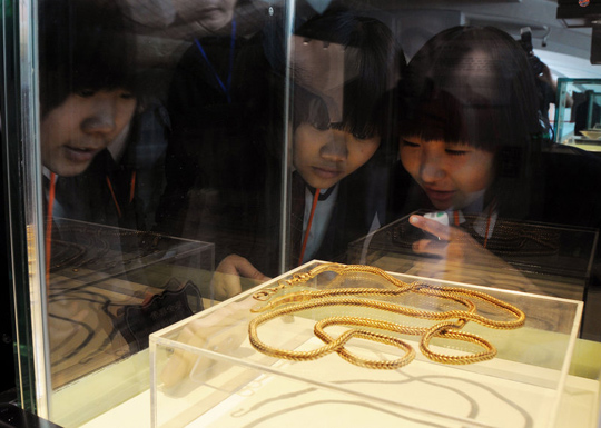 記者發(fā)現(xiàn),精心挑選展出的珍品則藏身在三號(hào)展區(qū)的六號(hào)宮內(nèi),這里完全模仿古代造船龍骨的骨架搭建的展廳,置身其中,彷佛處在古船的核心艙位。記者看到,曾經(jīng)引起極大轟動(dòng)的“南海一號(hào)”出水文物—青釉菊瓣紋瓷盤(pán)就擺放在醒目處,一眼望去,該瓷盤(pán)宛如菊花綻放,而盤(pán)底則彷佛盛了水一樣,晶瑩剔透。