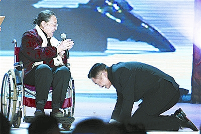 被譽(yù)為2010中國(guó)第一史詩(shī)巨片的《孔子》,1月中旬在北京舉行首映慶典,慶典上孔子的第77代嫡孫女孔德懋女士坐著輪椅上臺(tái),周潤(rùn)發(fā)便一直在旁邊像子侄一樣跪著聽(tīng)老太太講話?椎马渴①澲軡(rùn)發(fā)在電影《孔子》中飾演孔子的精彩表演,并將寫(xiě)有“永遠(yuǎn)的孔子”的橫幅贈(zèng)送給發(fā)哥。這時(shí),周潤(rùn)發(fā)出人意料地向孔女士認(rèn)真雙膝跪地叩首,隨后,與孔女士溫情擁抱,場(chǎng)面令人動(dòng)容……