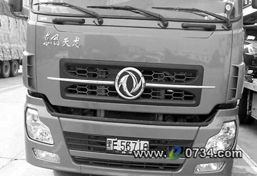當(dāng)日上午8時(shí)25分,潭耒高速交警彭桌謙和曹靖在朱亭服務(wù)區(qū)附近往南巡邏執(zhí)勤時(shí)發(fā)現(xiàn),一輛行駛非常緩慢的黑龍江半掛車后車牌有些怪異,經(jīng)查,發(fā)現(xiàn)該車前后牌都被變?cè)欤仪昂蟾鳟,車輛歸屬地黑“L”也改成了黑“E”,整個(gè)前后車牌全被黑膠帶給涂成了兩張形象各異的“傷疤臉”,被變?cè)斓淖帜缚崴啤盎鹦俏淖帧。?jīng)民警清理,掛車原車牌號(hào)為黑A7087掛,車頭牌號(hào)為黑L53710。據(jù)司機(jī)交代,變?cè)焯?hào)牌目的是為了在路肩停車和超低速行駛。