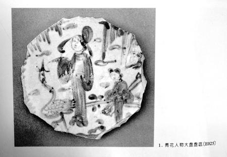 自發(fā)掘后,已經(jīng)有數(shù)百件瓷器陸續(xù)出水,這些瓷器主要包括繪有人物、花卉、動物圖案的青花大盤,以及碗、罐、碟、盆、缽、器蓋、杯、瓶、粉盒等等。數(shù)量最大的青花大盤直徑多在30厘米左右,內(nèi)壁繪瑞獸麒麟、富貴牡丹、仕女、書生以及花草等。不少器物的底部可見底款,包括“!、“祿”、“富貴佳器”等,部分器物底部有“大明年造”款銘。