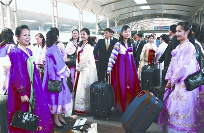 鮮艷的朝鮮族長(zhǎng)裙,200多人的龐大團(tuán)隊(duì)。昨日上午,即將在漢演出歌舞劇《紅樓夢(mèng)》的朝鮮血海歌劇團(tuán)抵達(dá)武昌火車站時(shí),吸引了眾多旅客關(guān)注目光。雖然團(tuán)隊(duì)并未接受媒體采訪,但記者仍多方打探出許多細(xì)節(jié)。