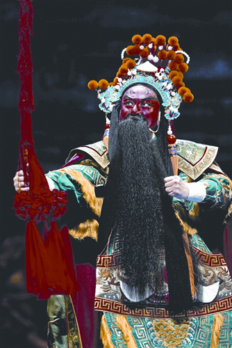 關(guān):我年過半百,知天命了。這里有很多原因,有導(dǎo)演對人物的要求。因為是原創(chuàng)劇目,作為演員來講,必須忠實地體現(xiàn)導(dǎo)演對人物的要求,跟傳統(tǒng)戲不一樣,傳統(tǒng)戲老師怎么教,演員怎么演,它有風(fēng)格給你限制住的。但是原創(chuàng)劇目,演員是可以有所突破的,突破就在于導(dǎo)演對人物的要求,你如果人物沒演好、沒達到導(dǎo)演要求,導(dǎo)演對你有看法的。觀眾不認可你,那不是你的責(zé)任,是導(dǎo)演的責(zé)任。另外是因為我崇拜高盛麟先生,我對高盛麟崇拜得五體投地。有這樣一個情結(jié)在里頭,我從心底里才有想去演關(guān)老爺?shù)囊环N沖動,但是舞臺不是你有了欲望和沖動就可以去演的,因為關(guān)老爺這個人物跟以往的武生,完全不一樣,高盛麟是楊派武生中最好的,楊小樓嫡傳。