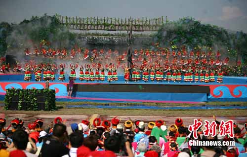 中新網(wǎng)西昌8月4日電(記者劉忠俊)4日上午,四川涼山州西昌市數(shù)千名群眾身著節(jié)日盛裝,跳起了獨(dú)具民族特色的歌舞,拉開了第六屆中國•涼山彝族國際火把節(jié)的序幕。