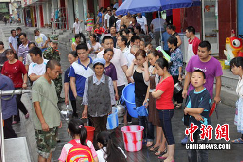 據(jù)悉,剛從甘肅舟曲抗洪救災(zāi)一線歸來(lái)的九寨消防大隊(duì)官兵獲悉后,迅速出動(dòng)兩臺(tái)水罐車積極尋找水源,在縣城人群密集地區(qū)為人民群眾送去干凈的生產(chǎn)生活用水。(完)