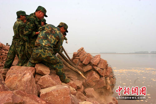 目前,鄭州市已組織駐鄭部隊(duì)官兵2800名和民兵預(yù)備役人員30000名分成兩個(gè)梯隊(duì),擔(dān)負(fù)黃河防汛任務(wù),另有部隊(duì)官兵和民兵預(yù)備役人員6700名負(fù)責(zé)水庫和內(nèi)河防汛。根據(jù)防汛預(yù)案,當(dāng)花園口出現(xiàn)4000至6000立方米每秒的洪水時(shí),黃河部分灘區(qū)會漫灘進(jìn)水,部分險(xiǎn)工、控導(dǎo)工程可能出現(xiàn)險(xiǎn)情,警備區(qū)和沿黃人武部將動員組織第一梯隊(duì)民兵集結(jié)待命、做好搶險(xiǎn)準(zhǔn)備,加強(qiáng)對險(xiǎn)工險(xiǎn)段的守護(hù),發(fā)現(xiàn)險(xiǎn)情及時(shí)搶救,并及時(shí)救護(hù)受災(zāi)群眾。完