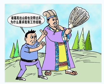 “諸葛亮出山前也沒帶過兵,為什么你們一定要求我有工作經(jīng)驗?”昨(18)日,名為“夢游王子”的網(wǎng)友在大楚網(wǎng)社區(qū)發(fā)帖講述他求職屢屢受挫的經(jīng)歷,質(zhì)疑企業(yè)用人苛求工作經(jīng)驗。