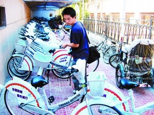 該校機電學(xué)院072班學(xué)生薛祥夫,第一個免費租到了自行車。他笑呵呵地說:“宿舍離教室遠(yuǎn),平時走路要將近20分鐘,我們一般都盡量不來回跑,F(xiàn)在,騎車幾分鐘就能到教室,太方便了!這輛自行車是用我的誠信卡換來的,我可得好好愛惜!