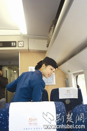從11月上旬開始,經(jīng)過理論培訓(xùn)的“準(zhǔn)動姐”分別登車至武——京、武——滬線時速250公里的動車組進(jìn)行試崗操作,開始帶妝為乘客服務(wù)。