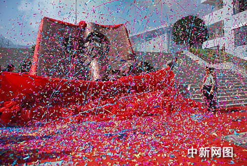 中新網(wǎng)汶川8月30日電(鐘美蘭)紅旗招展,彩帶飄飄。30日,由第二炮兵對口支援,在廢墟原址上建設(shè)汶川八一小學開學,學校舉行了隆重的開學典禮。