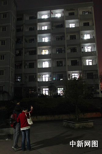 中新網(wǎng)重慶3月27日電 (連肖)27日是地球一小時日,當晚8時30分至9時30分,重慶9所高校大學生開展了熄燈一小時活動。其中,西南大學學生為倡導低碳生活,用寢室燈光和蠟燭分別拼成了字母“D”。