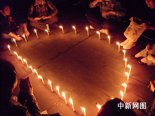 8時30分,隨著10秒倒計時的結(jié)束,西南大學各寢室的燈光依次熄滅,14個寢室亮起的燈光拼成了字母“D”字樣,校園內(nèi)頓時一片歡呼。在英語角,同學們還用蠟燭擺出了字母“D”,大家圍坐在蠟燭邊上,共同祈禱“地球平安,生態(tài)和諧”。