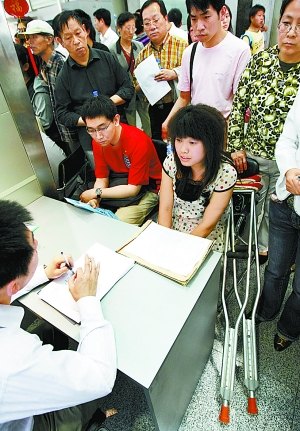 招聘會8時30分開始。7時許,北京人才服務中心就已經(jīng)迎來了不少殘疾人。據(jù)市殘聯(lián)職業(yè)介紹中心主任李雪梅介紹,這里面還包括來自全國20多個省市的外地殘疾大學生。