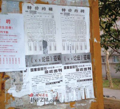 到2007年9月,在讀研究生已超過165萬人,大量教師、學生發(fā)表論文的需求,直接推動了學術刊物如火如荼地收取版面費。一名代理商提供了發(fā)表論文的“價目表”,省級刊物600-900元;國家級刊物900-1500元;核心刊物4500-18000元!斑@已經算低了,是有關系才能拿到的!