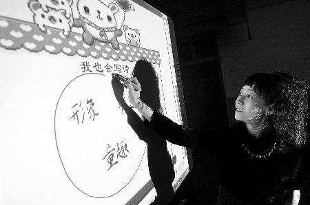 “電子白板解決了普通多媒體教學(xué)中,存在的幕布和黑板兩張皮的問題!蹦俏回(fù)責(zé)人說,用多媒體教學(xué),老師要坐在電腦前低頭操作,手被束縛了,眼睛也少了與學(xué)生的交流。