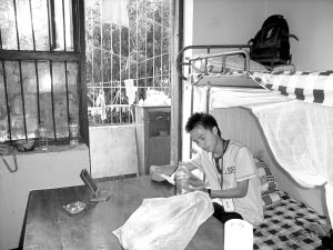 “我們?cè)谶@里生活無(wú)憂,而且每天都還有志愿者和社會(huì)各界人士來(lái)探望!币覀ケ晦D(zhuǎn)移到成都中醫(yī)藥大學(xué)下汪家拐校區(qū),和小尹同安置在該校區(qū)的還有他學(xué)校的70多名高三同學(xué)。他住在一幢6層的宿舍樓,宿舍內(nèi)窗明幾凈,地面整潔,床鋪全是新的,枕頭也是新的,甚至?xí)疽彩切碌摹!叭钦渲玫模瑫緞t是志愿者送的”。小尹坐在床邊的桌子旁,復(fù)習(xí)著功課。小尹說(shuō),在這里他不僅感受到了溫暖,更可以安靜迎考,他一定要考好,否則對(duì)不起幫助他們的人。