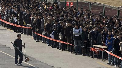 為了找工作,昨日(13日)清晨不到6時,天剛微微亮,許多大學畢業(yè)生就提前近3小時排起了長隊。
