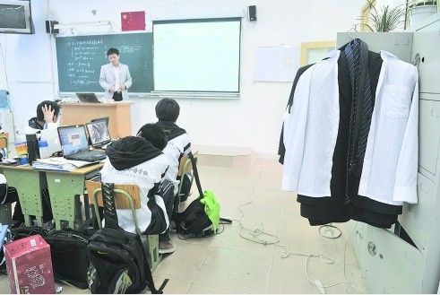 學生們認真記錄下這些本不屬于高中生的信息,并很快應用到了實際中來!澳銘摽粗业难劬。”昨日,在采訪時,一名學生對記者看著她的下巴的舉動有些不滿。