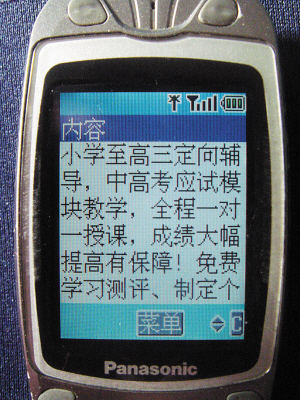 劉女士的孩子在紅橋區(qū)實(shí)驗(yàn)小學(xué)上五年級(jí),她最近經(jīng)常接到提供寒假輔導(dǎo)的短信。記者按照她短信中的號(hào)碼撥通了報(bào)名電話,自稱是某著名培訓(xùn)中心的“張老師”介紹說:“我們能提供小學(xué)一年級(jí)到高三各學(xué)科的定向輔導(dǎo),尤其是針對中高考的學(xué)生!迸嘤(xùn)地點(diǎn)在河西區(qū)的一棟寫字樓內(nèi),老師在一個(gè)大辦公室分割成的若干格子間內(nèi)對學(xué)生進(jìn)行一對一授課,還可以針對不同孩子制定特殊的輔導(dǎo)方式。