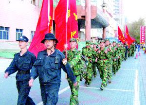 “腳底磨出水泡也要繼續(xù)走!”5月9日,晚上9點(diǎn),一支徒步隊(duì)伍途經(jīng)市中心的西大橋路段,身穿迷彩服的年輕教官對已經(jīng)走了12個(gè)小時(shí)、50多公里的50多名學(xué)員大聲地喊著。隊(duì)伍中的學(xué)員最小的12歲,最大的19歲,他們統(tǒng)一穿著迷彩服,3名新學(xué)員皮膚略顯白皙外,其余的學(xué)員臉上都有陽光暴曬后的痕跡。