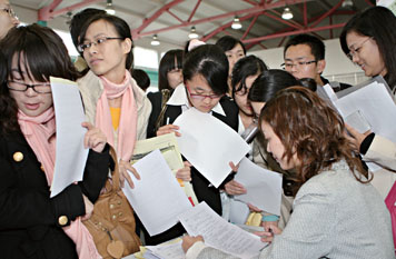 金融危機(jī)下,不少求職者對(duì)風(fēng)險(xiǎn)較小的行業(yè)格外青睞。本報(bào)記者施培琦攝