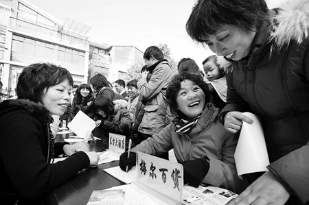 本報(bào)溫州1月31日電(通訊員黃松光)今天是牛年春節(jié)長(zhǎng)假最后一天,設(shè)在溫州市區(qū)新南站、西山、南郊等多處職業(yè)介紹中心異常熱鬧,介紹職位的攤位紛紛掛出供職信息,招收車(chē)間主管、經(jīng)理助理、行政人員等經(jīng)營(yíng)管理人才,裝配工、木工、焊工、技師等熟練工,以及酒店洗碗工、端碗工等雜務(wù)工。來(lái)自全國(guó)各地的求職者三五成群,絡(luò)繹不絕地來(lái)咨詢崗位。隨著春節(jié)假期結(jié)束,人們又開(kāi)始為新一年的工作忙開(kāi)了。
