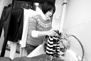 “手洗被套3元、薄上衣1元……”雖然父母是建材老板,但是在重師讀大一的這名富家女卻通過為同學(xué)手洗衣服來勤工儉學(xué)。據(jù)悉,這位女同學(xué)開的手洗店一個(gè)月可幫人洗一百多件衣服。