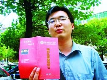 經(jīng)過初試和復(fù)試,他終于以優(yōu)異的成績拿回了湖南科技大學(xué)外國語學(xué)院英語專業(yè)的碩士研究生錄取通知書。