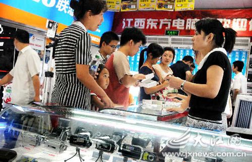 電腦、手機(jī)、MP3已經(jīng)成為目前一些家庭經(jīng)濟(jì)條件較好的大學(xué)生的“新三樣”,成為學(xué)生新學(xué)期的新裝備。某商場(chǎng)的一名導(dǎo)購(gòu)員告訴記者,開學(xué)前的這段時(shí)間是數(shù)碼產(chǎn)品的銷售旺季,各商家均紛紛采取各種促銷手段來吸引學(xué)生群體。正在南昌市一電子數(shù)碼城購(gòu)買MP3的大一學(xué)生小王告訴記者,考上大學(xué)時(shí)父母就答應(yīng)給她買手機(jī)和MP3,今天和媽媽一起出來挑選。