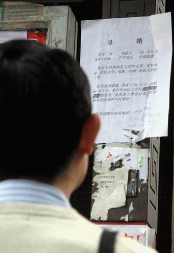 據(jù)父親劉先智(化名)介紹,他和妻子都在成都東郊一家大型國有企業(yè)上班。他們對女兒贊不絕口,從小學、中學到大學,女兒一直都沒讓家里操過心,2005年大學畢業(yè)后通過公招考進了成都某機關上班,F(xiàn)在女兒已經26歲了,還沒有男朋友,看著女兒身邊的同齡同學和朋友有的結婚、有的生子,他們一天比一天著急。“女孩子過了28歲找對象就不容易了!現(xiàn)在最不放心的,就是女兒的婚姻大事!眲⑾戎钦f,他們都是很傳統(tǒng)的家庭,結交的圈子都不寬,第一次張貼這種尋婿啟事,也是抱著試一試的態(tài)度。