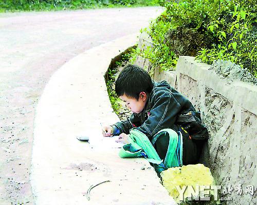 一條蜿蜒崎嶇的鄉(xiāng)村公路邊,一名小男孩佝僂著身體,趴在水泥公路路沿上奮筆寫著作業(yè)。即便有車輛經(jīng)過,他也不為所動,眉宇間透出的認真勁,讓人無不為之動容并心生別樣情愫。這是網(wǎng)友“情緣”3月26日在云陽縣清水鄉(xiāng)一條鄉(xiāng)村公路拍到的動人一幕。帖子發(fā)到網(wǎng)上,引起了網(wǎng)友對這名小男孩的生存狀況的關注。