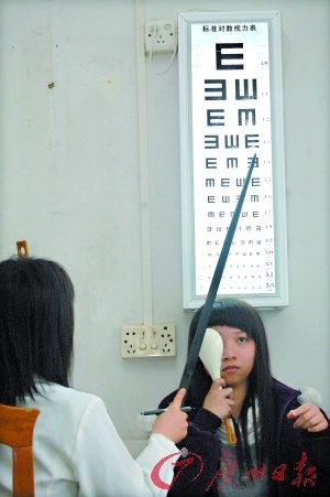 而記者了解到,江門中小學保健所近日所做的2008~2009學年中小學學生體質(zhì)抽查結(jié)果顯示:學生視力下降很明顯,隨著年齡的增長,近視發(fā)生率越高,小學近視率是30%、初中是50%、高中是70%。