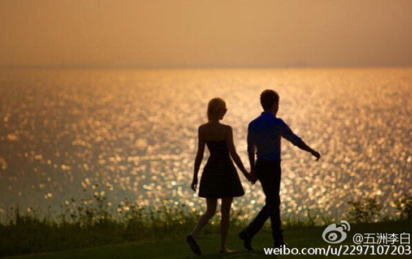 撒貝寧與新婚妻子夕陽下牽手