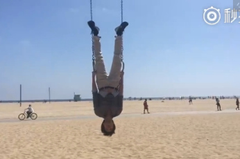 王力宏吊環(huán)上練倒立