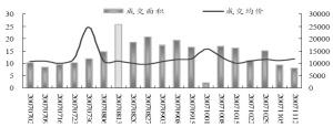 上海10月以后每周銷售面積相比高峰時(shí)期下降較少,基本維持在日均800套的平均水平,成交價(jià)格有所下滑,從最高時(shí)期的每平方米1萬多元下降到近期的8000多元。北京10月以后一手房住宅繼續(xù)保持每周3000套以上的銷售旺盛態(tài)勢,成交面積40萬平方米左右,房價(jià)穩(wěn)中有升。