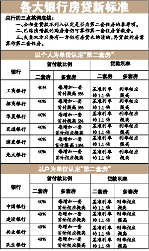 在已出臺(tái)具體房貸細(xì)則的銀行中,招行、浦發(fā)、華夏對(duì)已結(jié)清余額的購(gòu)房者再購(gòu)房的情況下,仍等同于首套住房。但是光大銀行較為嚴(yán)格,即便此前的房貸已還清,再貸款買房仍被視為第二套房,首付不少于40%,利率不低于同期同檔次貸款基準(zhǔn)利率的1.1倍。