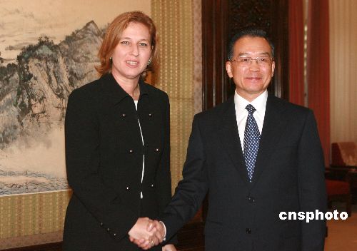 十月三十日,中國國務(wù)院總理溫家寶在北京中南海紫光閣會(huì)見以色列第一副總理兼外交部長(zhǎng)齊皮·利夫尼。中新社發(fā) 廖文靜 攝