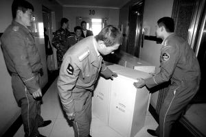 昨天下午,永泰園新地標(biāo)小區(qū)的各個(gè)門(mén)口仍有保安值勤。兩名客服工作人員守在電話機(jī)旁,但辦公室內(nèi)早已空空蕩蕩,連各辦公室門(mén)上的牌子也都被摘走。6名保安將存放小區(qū)資料的文檔從31層抬到樓下,這些檔案將在樓下暫存。