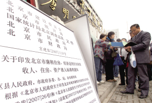 根據(jù)新頒布的城八區(qū)經(jīng)適房、廉租房審核標(biāo)準(zhǔn),街道是申請(qǐng)者要過(guò)的第一關(guān)。昨天一大早,東直門(mén)街道就接待了50多名申請(qǐng)者,“我們一開(kāi)門(mén),‘轟’一下子擠進(jìn)一堆人。”街道工作人員告訴記者,當(dāng)天他們共接待了200多位經(jīng)適房申請(qǐng)者。