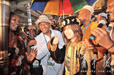 記者看到,吳晶在數(shù)十位非洲朋友與無數(shù)閃光燈的熱情招呼下,一開始還不明白究竟發(fā)生了什么事情。在儀式結(jié)束后她才定下心來對記者表示,非洲館是她今天去的第一個展館,真是沒想到會給自己帶來如此驚喜。