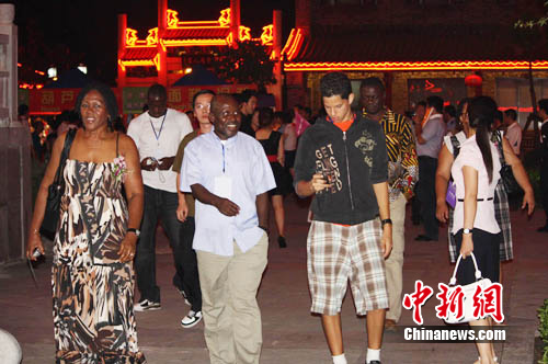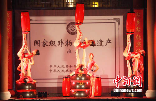 18日晚間,外賓們在鹽城水街參加游園活動,國家非物質(zhì)文化遺產(chǎn)淮劇和雜技給外國朋友們奉上了一臺具有鹽城地方文化特色的視覺饕餮盛宴。鹽城市雜技團的雜技《綻放的蓓蕾》和《轉(zhuǎn)動的彩虹》美輪美奐,體現(xiàn)了鹽城雜技的特色和文化藝術(shù),驚險而又漂亮的動作贏得了觀眾們不時的喝彩。江蘇省淮劇團的淮劇表演可謂是文武全套。國家一級演員黃萍和薛建華的文戲《預備員》選段,向外賓展示了淮劇韻味十足的唱腔和優(yōu)美的身段。而展示武戲《將軍令》的表演者皆是16歲左右的淮劇新生代學生,他們基本功扎實的武戲表演惹得臺下觀眾叫好聲不斷。